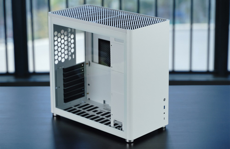 Vỏ case JONSBO D40 White được thiết kế theo kiểu bo góc thẩm mỹ đồng thời mang màu đen nhám tối giản kết hợp với mặt hông kính cường lực đem lại sự hiện đại và thẩm mỹ cho góc setup làm việc của bạn. Phần mặt đáy và mặt trên của vỏ case được khoét các vùng hút/thổi gió độc đáo giúp cho luồng không khí được hút và thổi ra liên tục đảm bảo sự thông thoáng, mát mẻ cho phía bên trong với tối đa 6 vị trí lắp quạt tản nhiệt.
