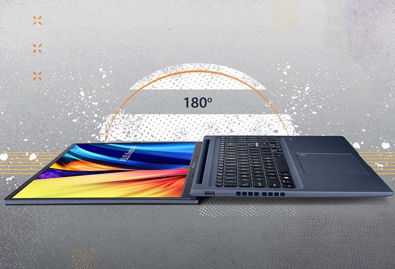 Laptop Asus Vivobook 16X M1603 thiết kế bản lề 180° để bạn dễ dàng chia sẻ thông tin với người đối diện hơn. |