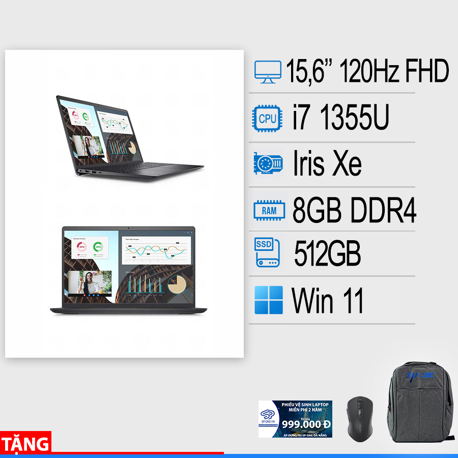 Laptop Dell Vostro 3530 (Core™ i7-1355U/ Ram 8GB/ 512GB SSD/ Intel Iris Xe/ 15.6 inch FHD 120Hz/ Win 11 Pro/ Đen)