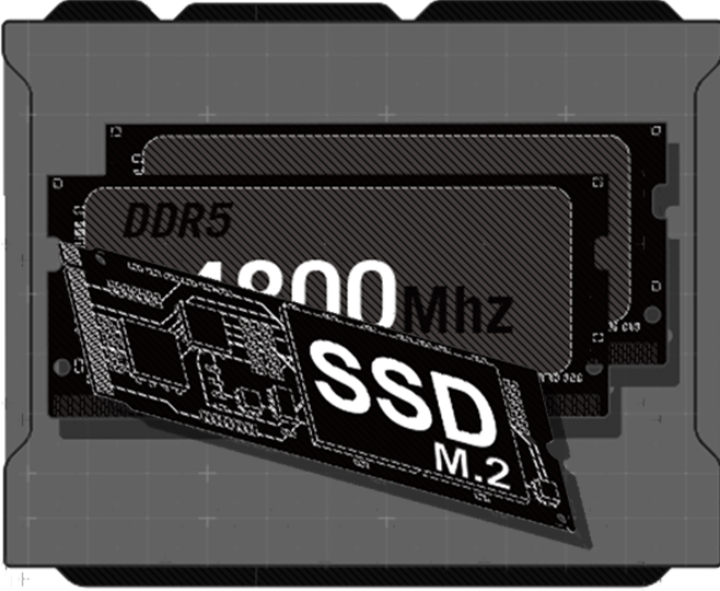 Asus TUF Dash F15 FX517Z tận dụng tối đa hiệu năng từ bộ nhớ RAM chuẩn DDR5-4800 mới nhất cùng PCIe 4.0 để tận hưởng tốc độ và độ phản hồi tốt hơn, nâng trải nghiệm chơi game của bạn lên tầm cao mới. |