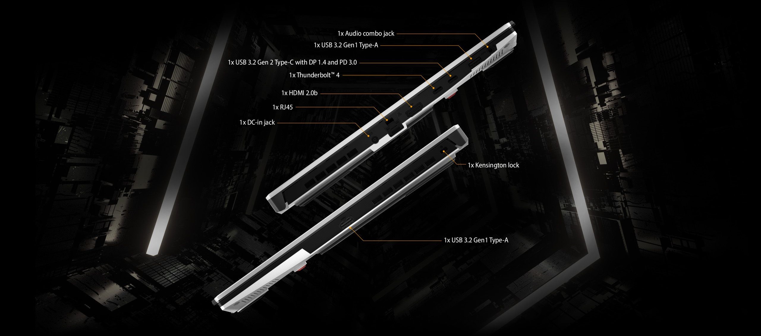 Asus TUF Dash F15 FX517Z hoạt động đa nhiệm hiệu quả hơn qua cổng ThunderBolt 4 và USB-C với DisplayPort/ G-sync, xem phim 4K UHD trên màn hình lớn hoặc dễ dàng kết nối máy chiếu với HDMI 2.0b. Kết nối các thiết bị ngoại vi qua USB 3.2 Type-A để bạn thoải mái sáng tạo.