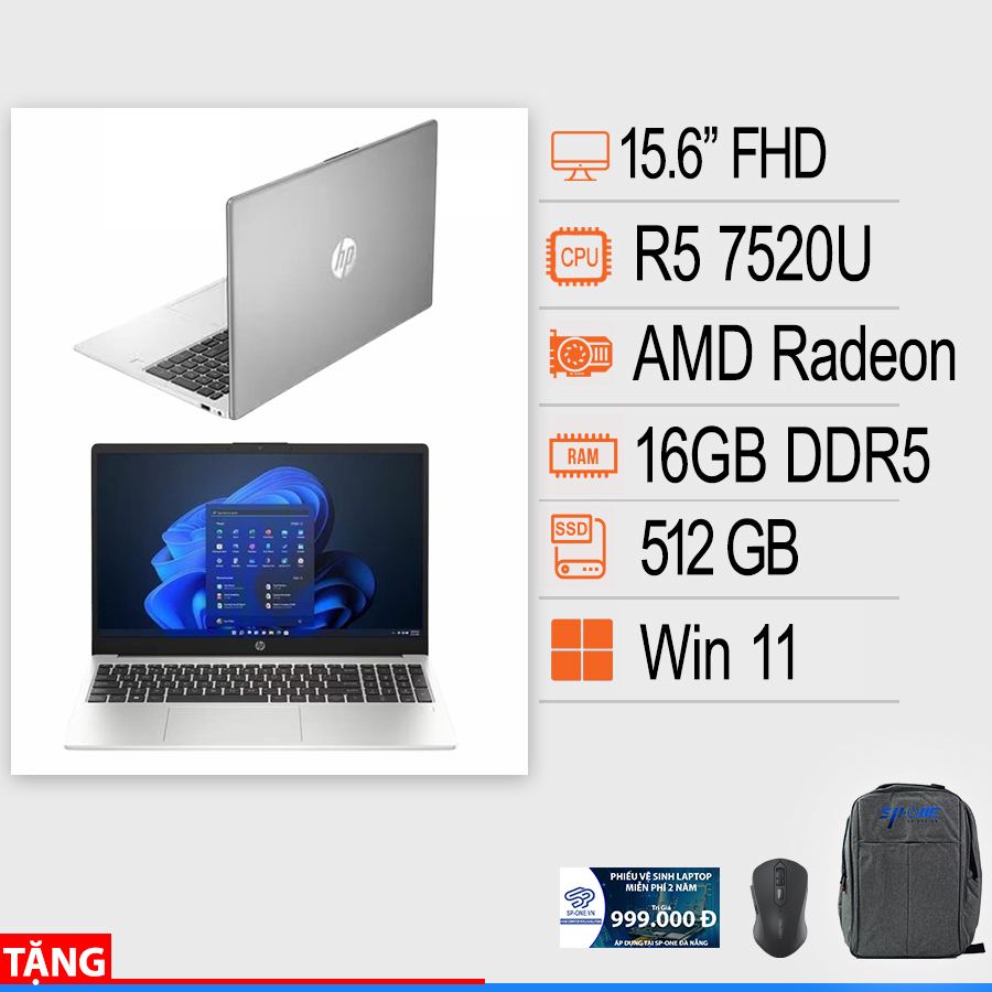 Laptop HP 15 255 G10 (BK2D8PT) (R5 7520U/16GB RAM/512GB SSD/15.6 FHD/Dos/Bạc)