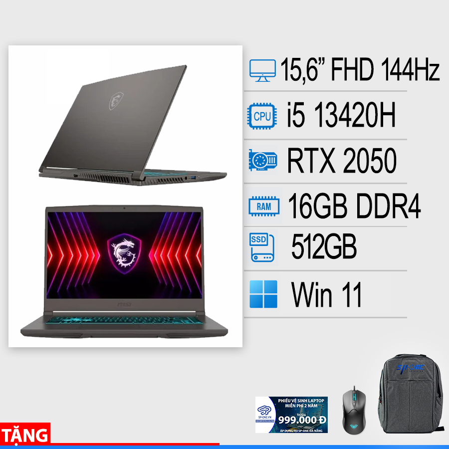 - Màn hình: 15.6 inch FHD (1920 x 1080) IPS 144Hz, Thin Bezel, 45%NTSC