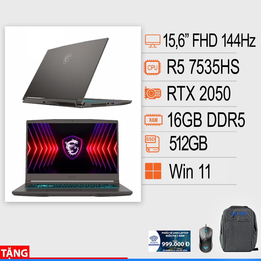 Laptop MSI Thin A15 B7UCX 240VN (R5-7535HS / 16GB DDR5 / SSD 512GB / VGA RTX 2050 4GB / 15.6 FHD IPS & 144Hz / Win11)