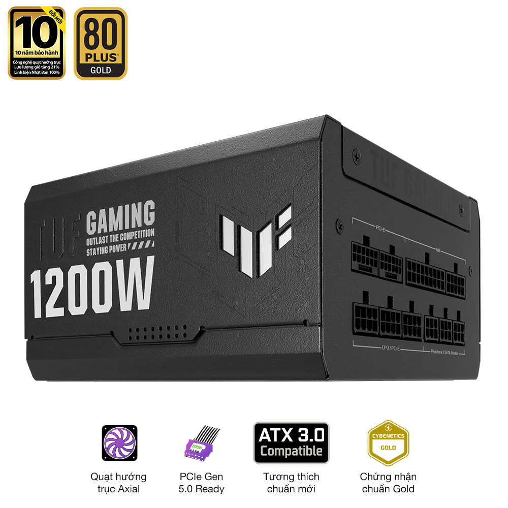 Nguồn ASUS TUF GAMING 1200G (1200W, ATX 3.1, PCIe 5.0, 80 Plus Gold, Full Modular, 10 năm bảo hành)