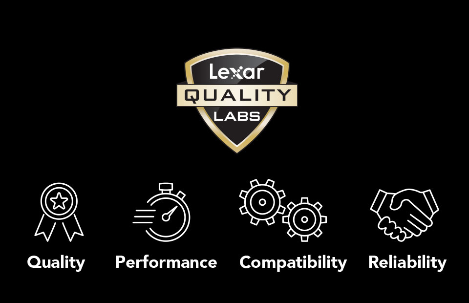 Tất cả các sản phẩm của Lexar đều được trải qua các thử nghiệm rộng rãi trong Lexar Quality Labs với hơn 1.100 thiết bị kỹ thuật số, để đảm bảo hiệu suất, chất lượng, khả năng tương thích và độ tin cậy ở mức cao nhất. |